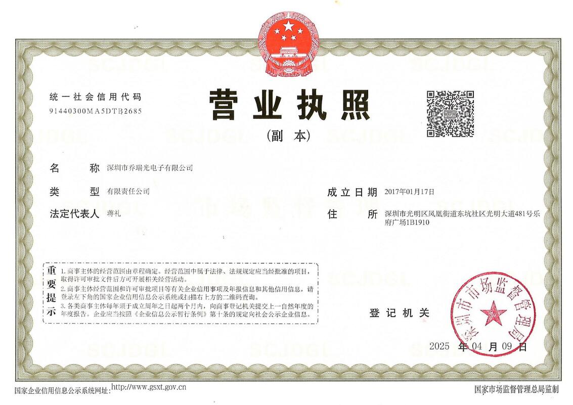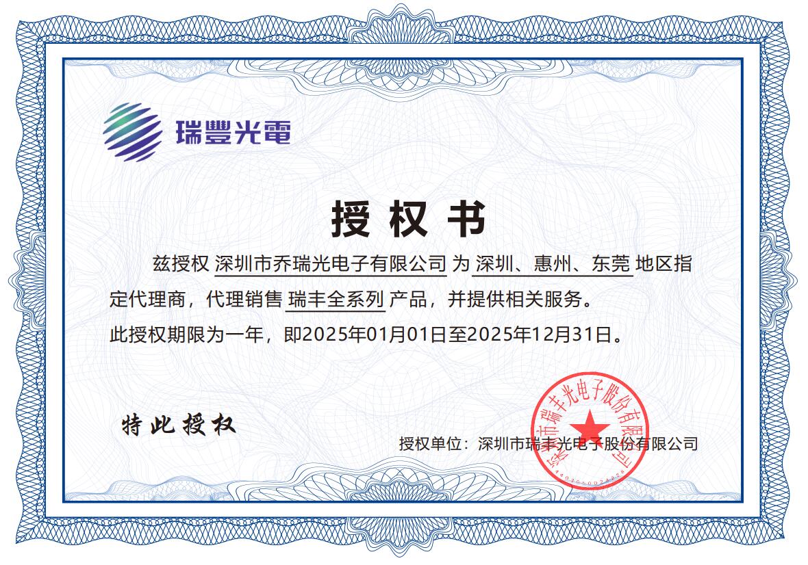 深圳市乔瑞光电子有限公司成立于2017年1月, 是深圳市瑞丰光电子股份有限公司(股票代码:300241)中小客户的销售服务窗口。 很好的解决瑞丰光电中小客户因交期,服务等响应慢的问题。乔瑞连续3年成为瑞丰光电子优秀代理商。目前为瑞丰光电子最大代理商,我们年销售额在3000-4000万。 瑞丰光电定位于给全球中高端客户提供高品质的LED 光源。目前主要产品:TOP LED(2835/2216/3528/3014/4014...)、Chip LED(0603/0805/1206)、Power LED(EMC 3030/EMC 5050)、COB模组等产品。主要应用于LED商业照明,室内照明,LED性线灯条以及LED路灯,LED工矿灯,泛光灯等LED指示类产品。 乔瑞光电子有专业从事LED领域7年以上人员7名,目前我司已服务瑞丰光电中小客户达500家左右,交货快速反应以及专业售后服务上,赢得了中小客户的赞美和认可。让更多的中小客户因使用瑞丰光电的产品,而实现了更好的价值。